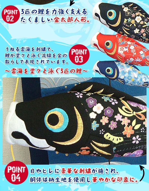 ![]() 風雲!金太郎鯉 室内こいのぼり | ![]() 金太郎と昇り鯉 -クマ乗り金太郎- | ![]() 翔べ翔べ! 金太郎鯉のぼり | ![]() かがやき夢鯉 室内こいのぼり |