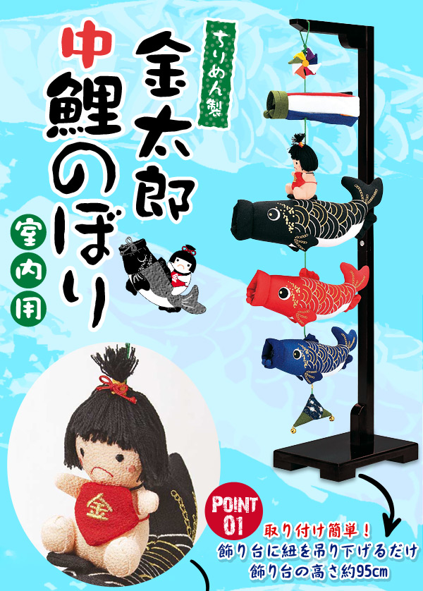 鯉のぼり 室内 ちりめん 室内用こいのぼり 室内飾り 端午の節句 お祝い 子供の日 金太郎(中)高さ95 鯉のぼり 室内用 ちりめん こいのぼり