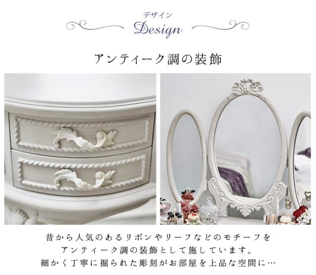ドレッサー おしゃれ 化粧台 鏡台 メイク台 三面鏡 アンティーク風 可愛い 姫系 ホワイト アンティーク ドレッサー本体単品 セグレータ ドレッサー 化粧台 鏡台 アンティーク風 白 おしゃれ