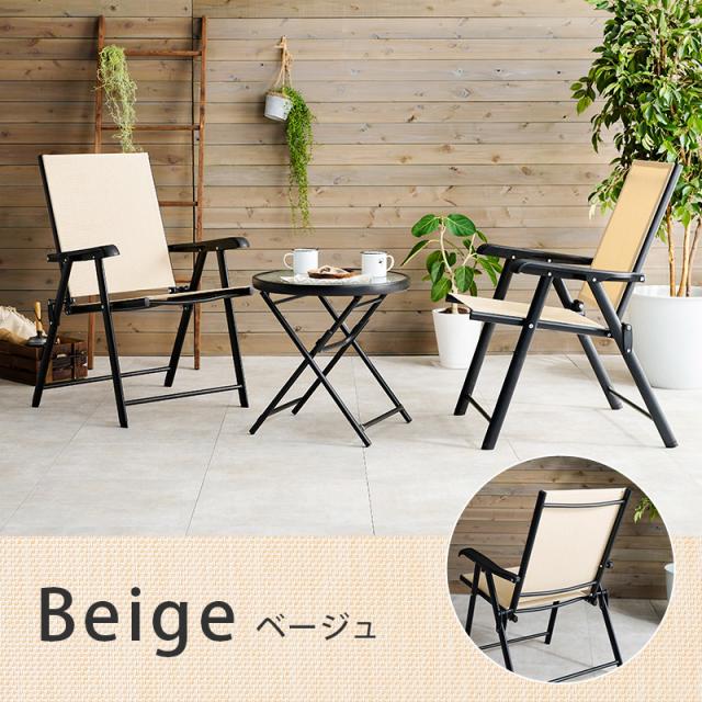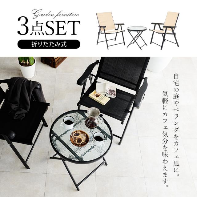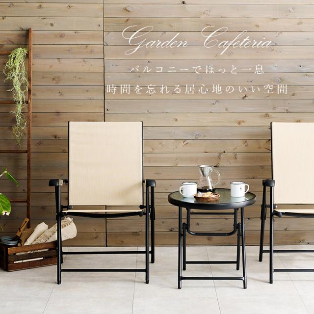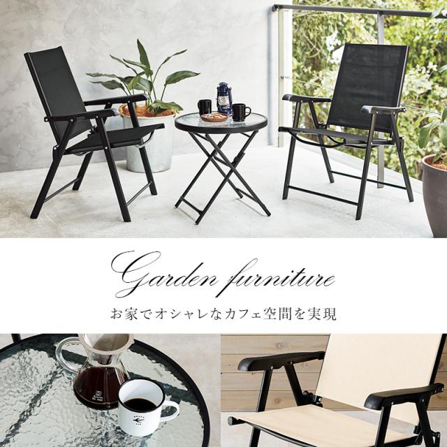 自宅の庭やベランダで使えるガーデンテーブル&チェア2脚の3点SET。