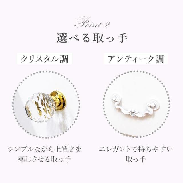 取っ手はクリスタル調とアンティーク調の選べる2種類。