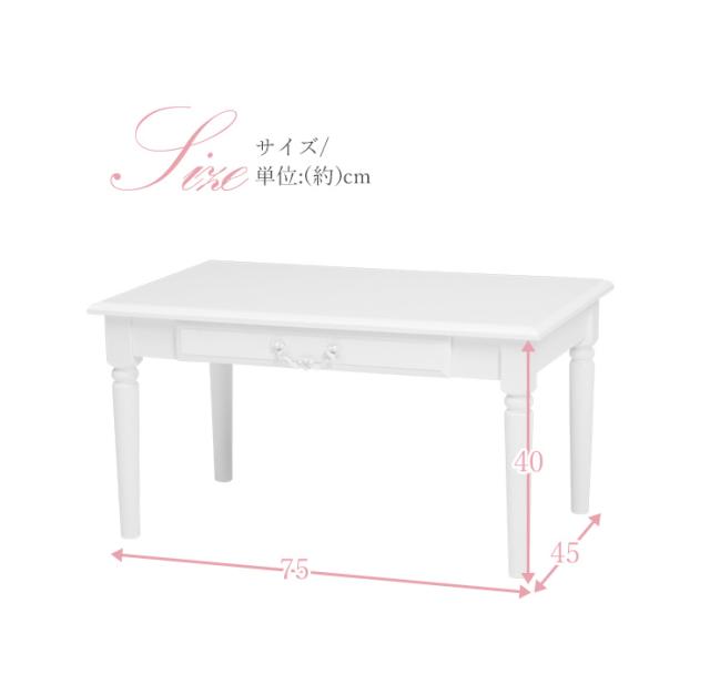 テーブル ローテーブル リビングテーブル おしゃれ センターテーブル 引き出し アンティーク調 ホワイト 白 姫系 かわいい 幅75cm レーヌ テーブル ローテーブル おしゃれ 姫系 アンティーク風