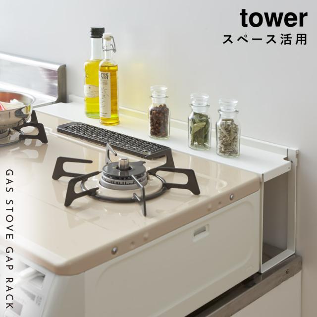 コンロ奥隙間ラック タワー 山崎実業 tower ガスコンロ奥ラック コンロ奥 隙間 キッチンラック おしゃれ モノトーン ホワイト ブラック 4783 4784