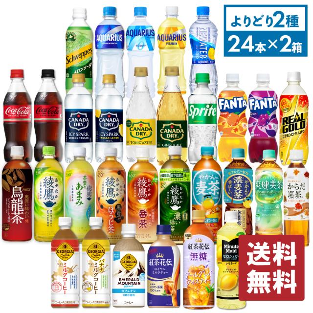 水 炭酸水 ペットボトル コカ・コーラ よりどり 綾鷹 爽健美茶 やかんの麦茶 アクエリアス 紅茶花伝 440-650mlPET×24本入 選べる2箱 【送料無料】