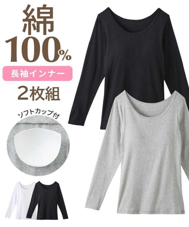 【WEB限定】綿100%ソフトカップ付長袖インナー2枚組