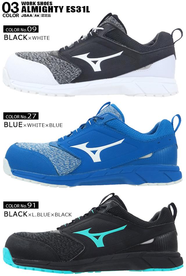 サイズ交換無料 安全靴 スニーカー ミズノ MIZUNO オールマイティ ALMIGHTY ES31L F1GA1903 ゴム紐タイプ