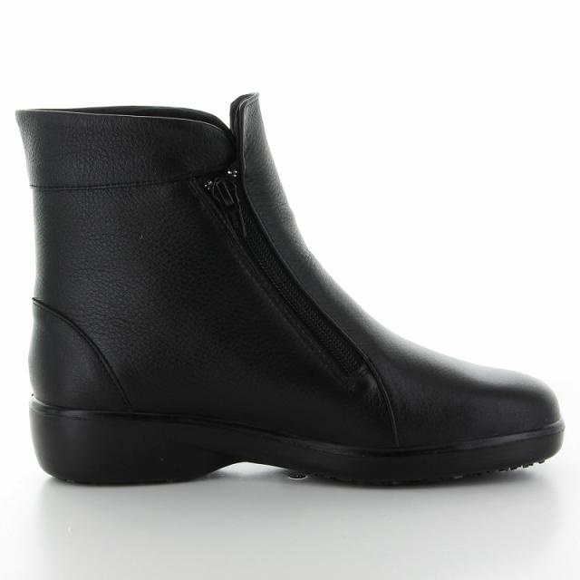 日本製、雪寒地向け本革コンフォートブーツです。表革はガーメントレザーで履くほどに足に柔らかくフィットします。ソールには一般的なガラス繊維に加え、その1/10以下のサイズの超微細なウールガラス繊維を配合した防滑ラバー「3Dナノスペラン」を採用。ラバー本来の柔らかさ・弾力性は維持したまま、ガラス繊維の総数を従来の約4倍の本数に増加させて防滑効果を約15%向上させています。【スペラン】ソールにミクロのガラス繊維を垂直に配置することで、優れた防滑性をもったソールです。【ガーメントレザー】天然皮革で柔軟性を持たせるため揉み加工を施したソフトレザーです。※色のばらつきや革の表面にできるシワやしわ模様の不均一さは動物の皮膚が持つ自然な特徴で、革が天然素材である為に革の加工や染色の過程で起こることがあります。 【撥水加工】アッパーに撥水加工を施しています。※防水仕様ではありません。【ワイド設計】【ベステック(R)】(ウィズ)4E (素材:アッパー) 天然皮革(ステア) (底材) PU/3DナノスペランTM (原産地) JAPAN (重量)片足約290g/23.0cm時 (ヒール高)約3.5cm/23.0cm時 レディース、22.0cm 22.5cm 23.0cm 23.5cm 24.0cm 24.5cm 25.0cm 25.5cm