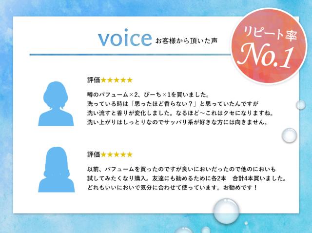 - パフュームとアイスメンを愛用してます。 その日の気分によって使う方を変えてますが、どちらも好きな匂いです。 商品が間違えて届いたこともありましたが、その際のお店の対応も素晴らしかったです。 洗い上がり...