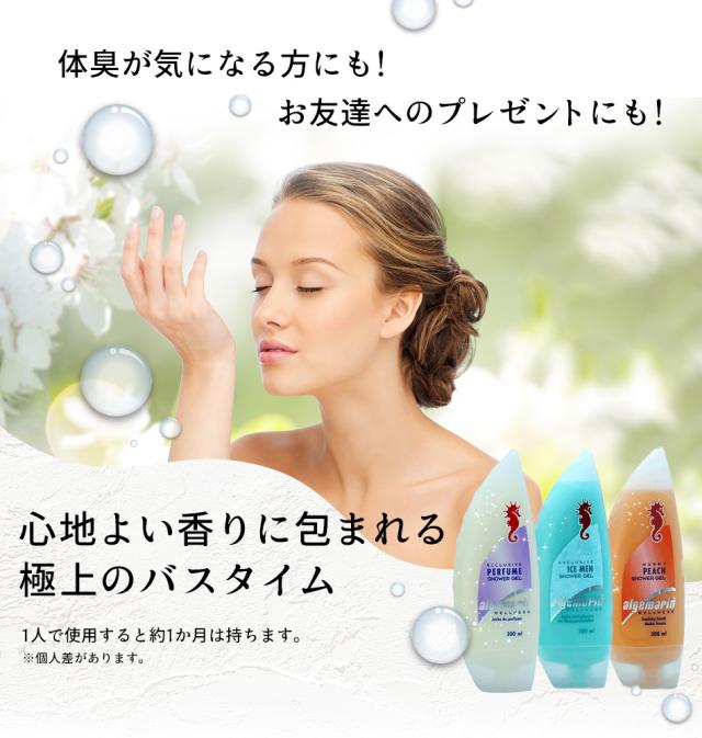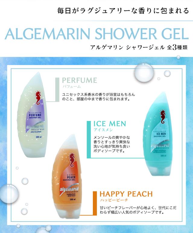 送料無料 アルゲマリン ボディソープ 加齢臭や体臭対策にも!3種類 の中から選べる4本セット algemarin シャワージェル (パフューム・アイスメン・ハッピーピーチ)体臭 体臭予防 加齢臭 |ボディーソープ | 石鹸 香水(body-soap-arugemarin-2)