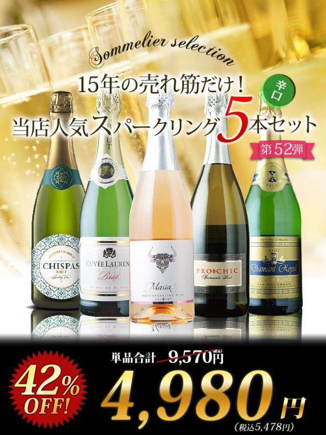 ワインセット 当店人気スパークリングワイン5本セット(スパークリングワイン4・ロゼスパークリング1) 第52弾