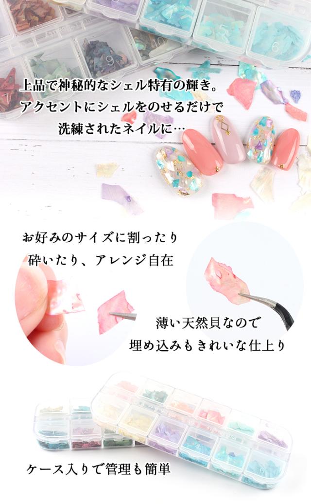メール便 プレートシェル12色セット | ネイル セルフネイル ジェル ジェルネイル シェル 貝殻 ネイルパーツ セット ネイル ネイル用品