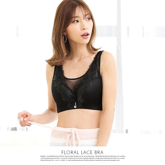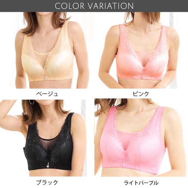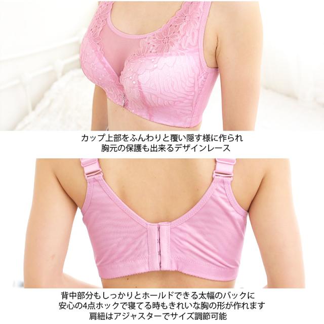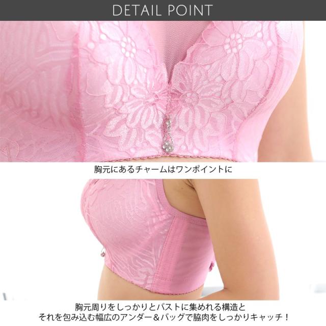 ブラ ブラジャー 大きい サイズ レディース 下着 脇肉 スッキリ ナイトブラ (rs-uw-204m) 【メール便送料無料】 花柄 レース ブラ 胸元 カバー 4点ホック 美胸 幅広 脇高 チャーム ワンポイント インナー Pixy Party agesugi_sfa