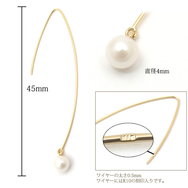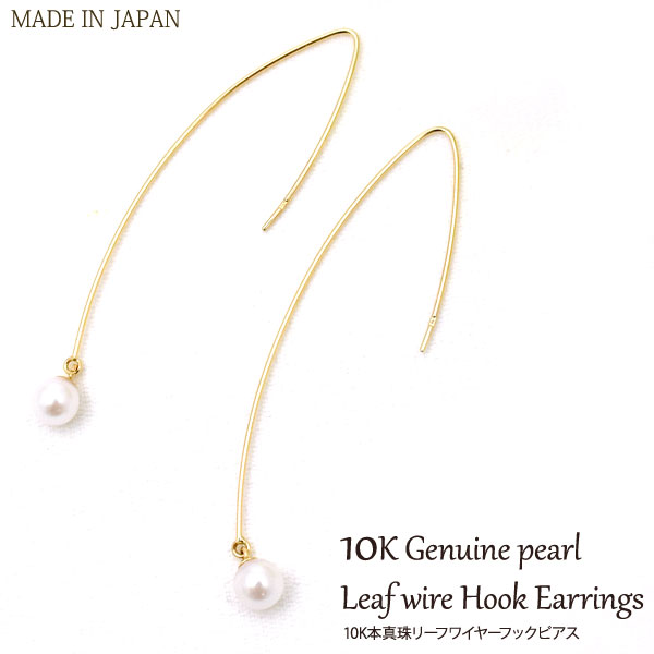 ピアス 日本製 K10 本真珠 リーフワイヤー フックピアス パール 10金 ピアス 細身 ワイヤー 葉っぱモチーフ pierced earrings 送料無料 ギフト プレゼント 贈り物