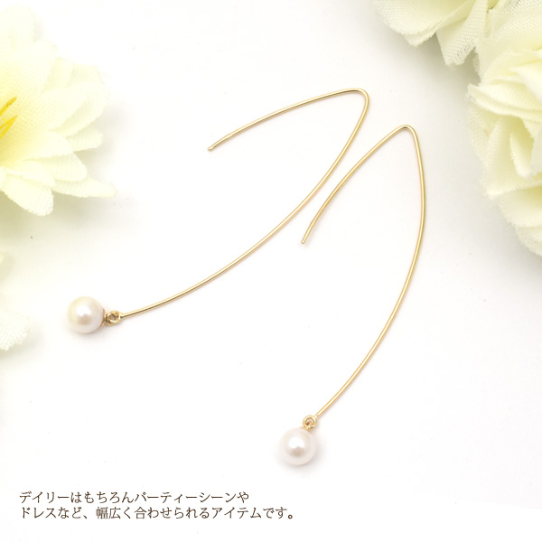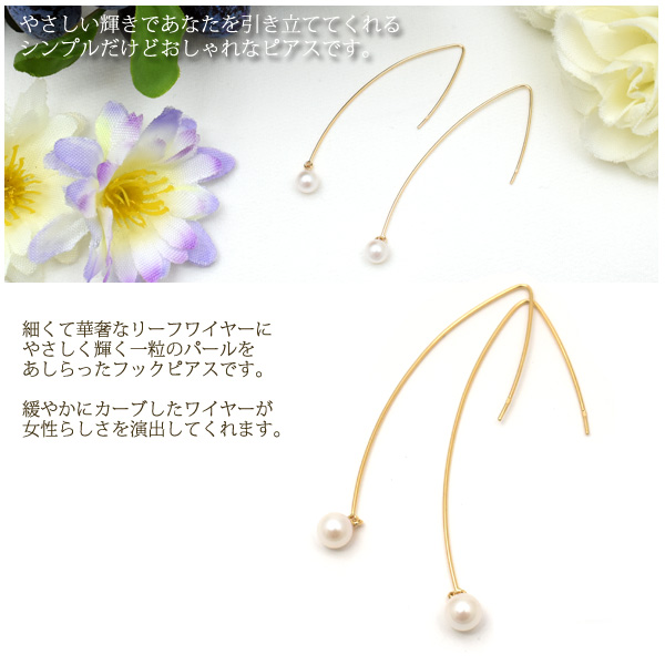 細くて華奢なリーフワイヤーに、やさしく輝く一粒のパールをあしらったフックピアスです。