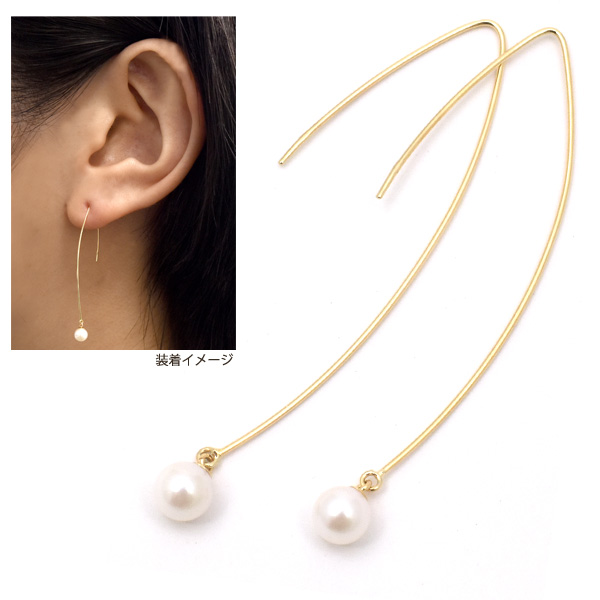安心の日本製!K10(10金)使用! 本真珠リーフワイヤーフックピアス