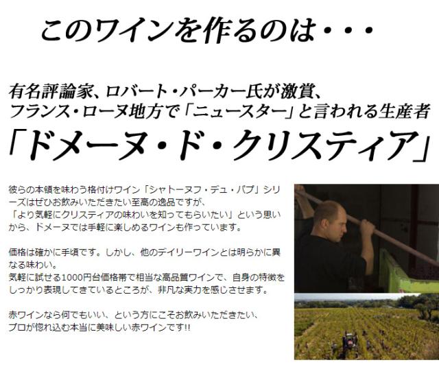 ワイン 赤ワイン コート・デュ・ローヌ・ルージュ ドメーヌ・ド・クリスティア 2022年 フランス ローヌ フルボディ 750ml