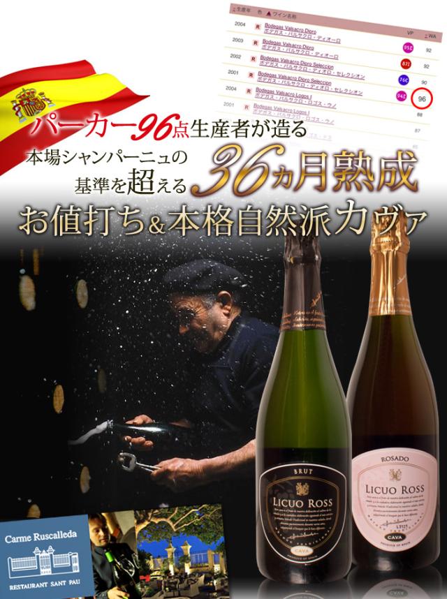 シトラスやリンゴ、白い花の、ほのかな蜜を思わせる香りの中に、 36か月熟成で醸された、パン酵母のような熟成香が感じられます。 柔らかく深みのある、バランスが取れた味わい。| ワイン名(原語) | カヴァ リクオ・ロス ブリュット (CAVA LICUO ROSS BRUT) |