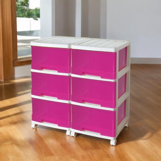 深型タイプの引き出し3段の2個組で合計6杯の引き出しですので衣類や小物などたっぷり収納できます♪