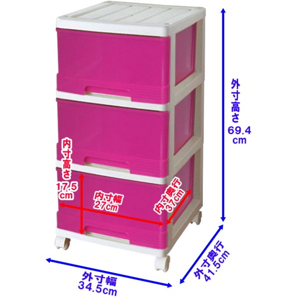 収納ボックス 収納ケース 衣類 押入れ 引き出し スリム チェスト プラスチック 深型 3段 2個組 おしゃれ ホワイト/ピンク キャスター付 日本製 送料無料