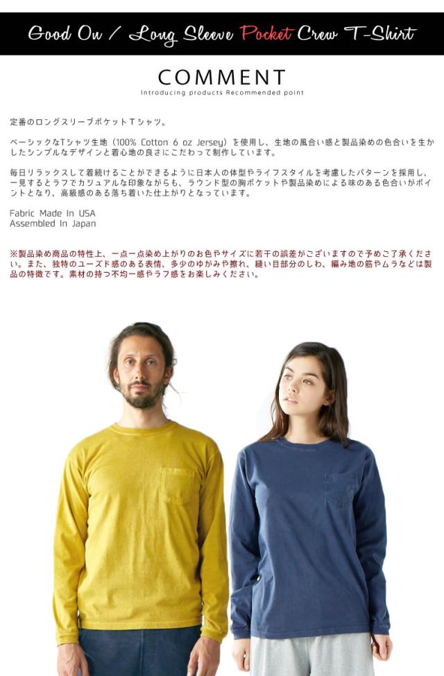 GOOD ON tシャツ グッドオン メンズ 長袖 ピグメントダイ ロングスリーブポケットTシャツ クルーネック golt1306 後染め L S POCKET TEE コットン S M L XL ホワイト ブラック グレー アメカジ おしゃれ アーベン 2025年