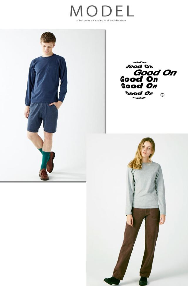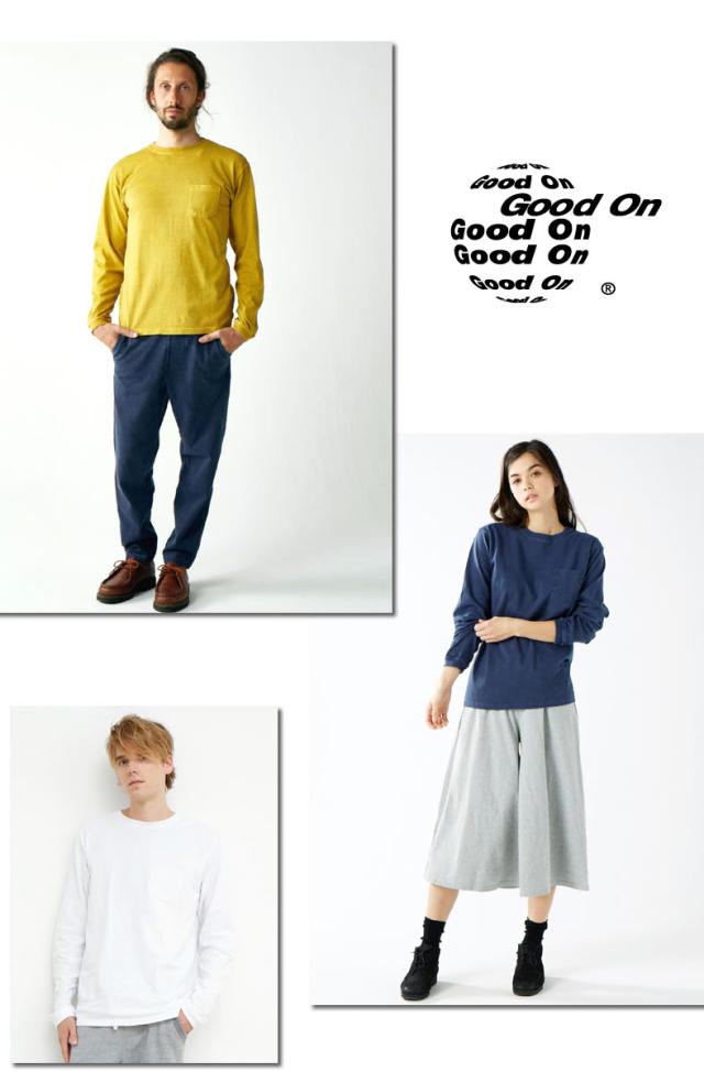■ GOOD ON グッドオン BRAND CONCEPTアメリカが大量消費時代に入る以前の衣料品は生地・縫製の質に優れ、何十年も昔の製品が古着としての価値を得て今も多く残っています。 こういった製品の、今もなお着続けられるほどの丈夫な作りや、愛着とともに増していく風合いに魅了されて、Good Onの製作がスタートしたのは1997年のこと。 質より量を求めるアメリカの現状において、こだわった物づくりに対して熱くなってくれる工場や生地屋は存在するのだろうか? この難題をクリアすることから取り組み、以来20年にわたって品質と技術を高めながら、全てにおいてこだわった古き良きアメリカの名品を今に落とし込み、毎日何気なく袖を通したくなるような究極のデイリーウェアを生み出し続けています。 肌に優しく丈夫な高品質のアメリカ綿を使用し、生地の特色に合わせたデザインをアメリカと日本で縫製。染色方法も常時使い分けて量産しています。 いつの時代でも幅広いお客様にフィットするベーシックでシンプルな製品だからこそ、長く着るための耐久性も必要不可欠。 品質と着心地はごまかしがききません。 身体に馴染むパターン、長く着る為の縫製、後染めでの縮率を考慮し一番良い型になるよう計算されたサイズスペック。 一切妥協の無い数々の工程を経てお届けする、最良の製品。一度手にすればきっとその違いをお分かり頂けると思います。 ベーシックでシンプル。だからこそ違いのわかる質と着心地。味のある色と安心の耐久性で経年変化を楽しめる特別な一枚。 “ Comfortable Basic by U.S.A " Good On your body ! ■ GOOD ON グッドオン 商品詳細 定番のロングスリーブポケットTシャツ。 ベーシックなTシャツ生地(100% Cotton 6 oz Jersey)を使用し、生地の風合い感と製品染めの色合いを生かしたシンプルなデザインと着心地の良さにこだわって制作しています。 毎日リラックスして着続けることができるように日本人の体型やライフスタイルを考慮したパターンを採用し、一見するとラフでカジュアルな印象ながらも、ラウンド型の胸ポケットや製品染めによる味のある色合いがポイントとなり、高級感のある落ち着いた仕上がりとなっています。 ※ホワイトは後染めをしていませんが、製品後に洗いをかけ他の色と同様に縮ませた状態となっています。 ※メタルグレーは製品染め(後染め)ではなく、先染めの黒い糸とグレーの糸を絶妙に混ざり合わせて生地を編み立てる事で、きれいな杢グレーに仕上げており、製品後に洗いと乾燥をかけて縮ませています。 |