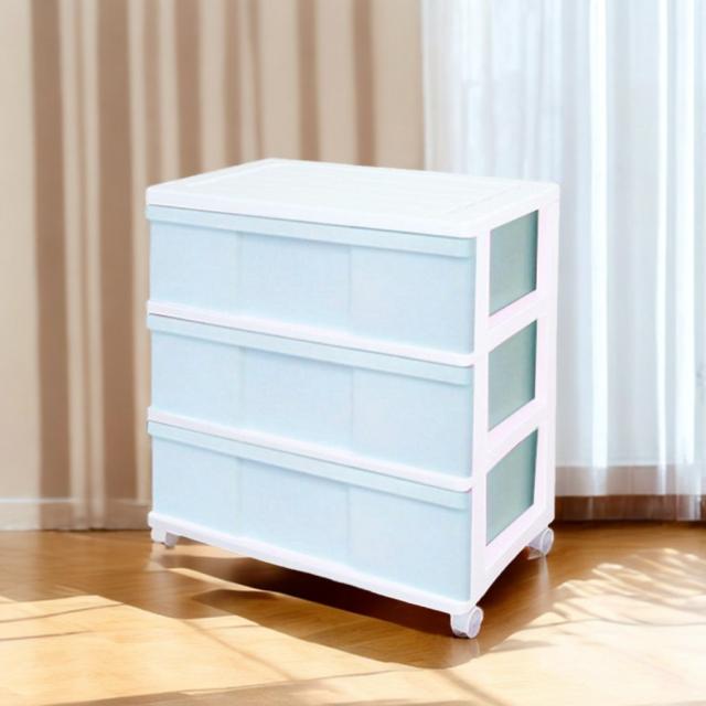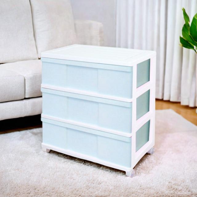 収納ボックス 収納ケース 衣類 押入れ 引き出し ワイド チェスト プラスチック 3段 幅60cm おしゃれ ホワイト/アイスブルー 日本製 送料無料