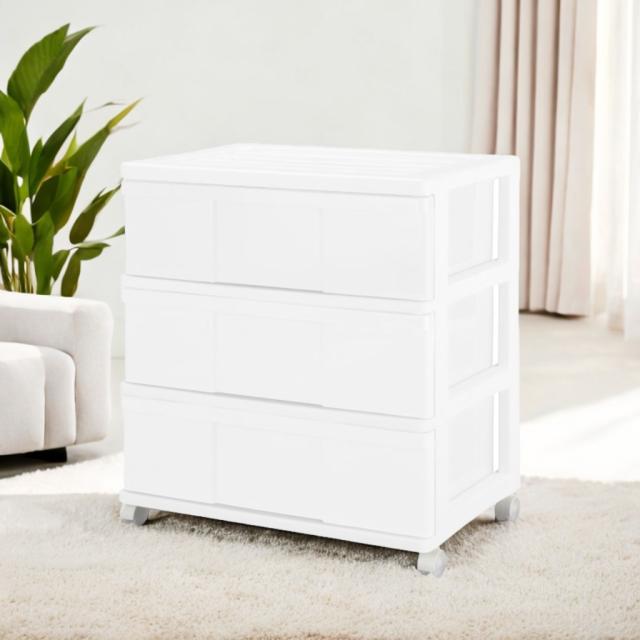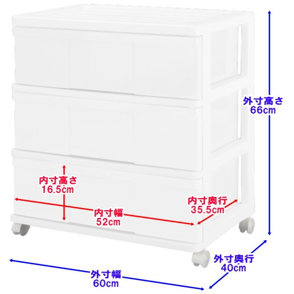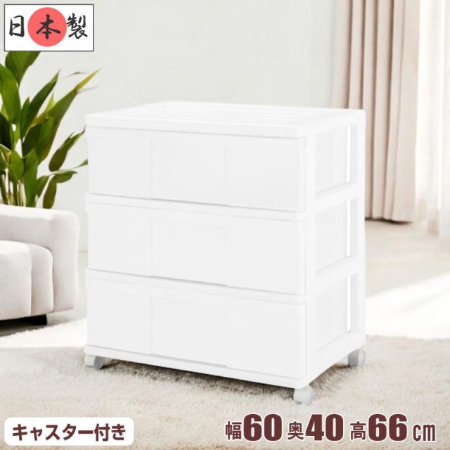 収納ボックス 収納ケース 衣類 押入れ 引き出し ワイド チェスト プラスチック 3段 幅60cm おしゃれ マシュマロホワイト 日本製 送料無料