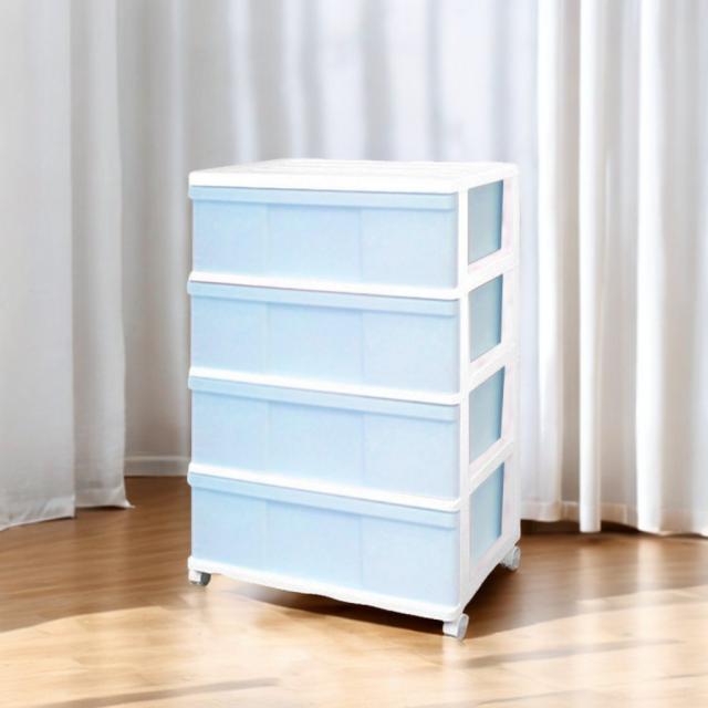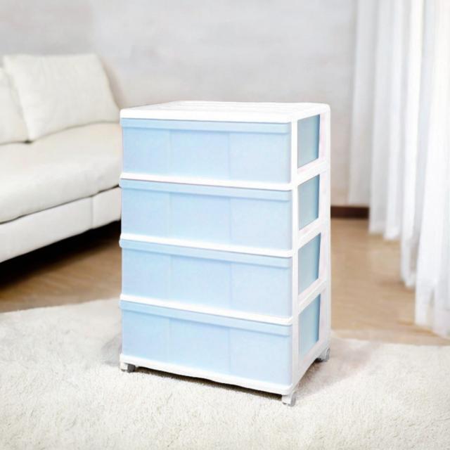 収納ケース 引き出し ワイド チェスト プラスチック 4段 幅60cm おしゃれ ホワイト/アイスブルー 日本製 送料無料