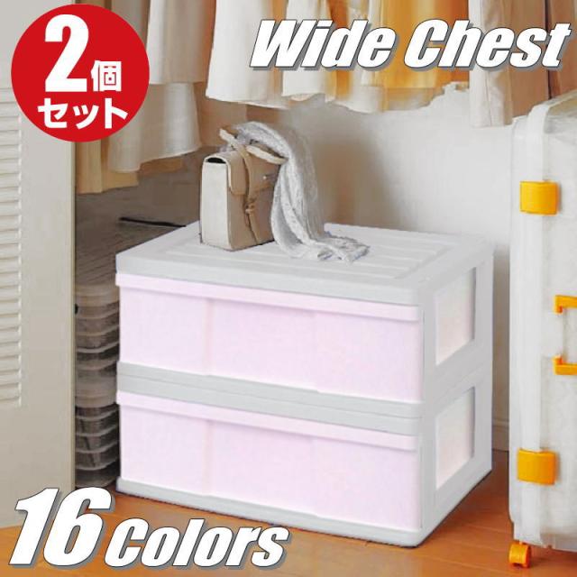 収納ボックス 収納ケース 引き出し ワイド チェスト プラスチック 完成品 1段 2個組 幅60cm おしゃれ ホワイト/チェリーピンク 新着 送料無料 【自社製造】