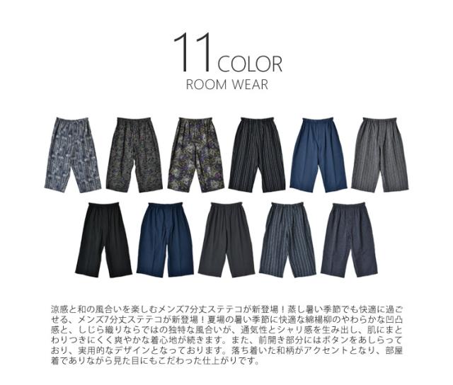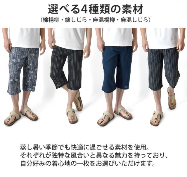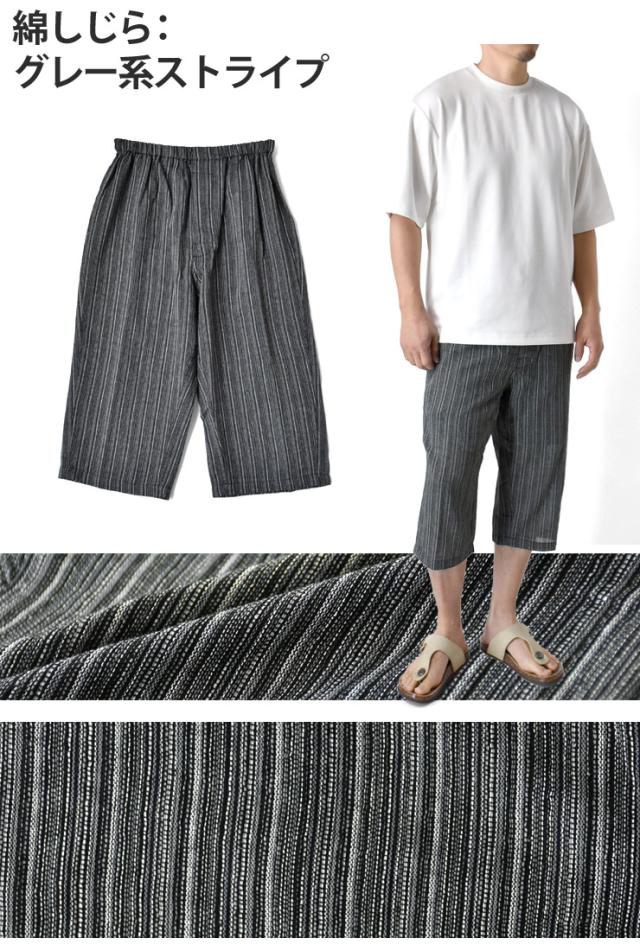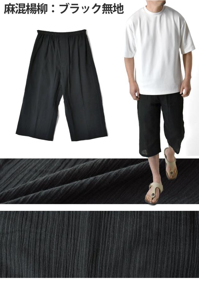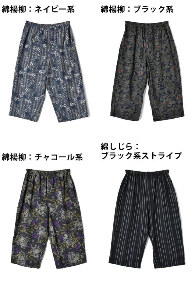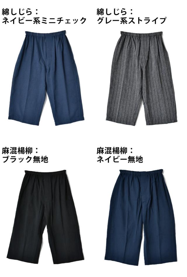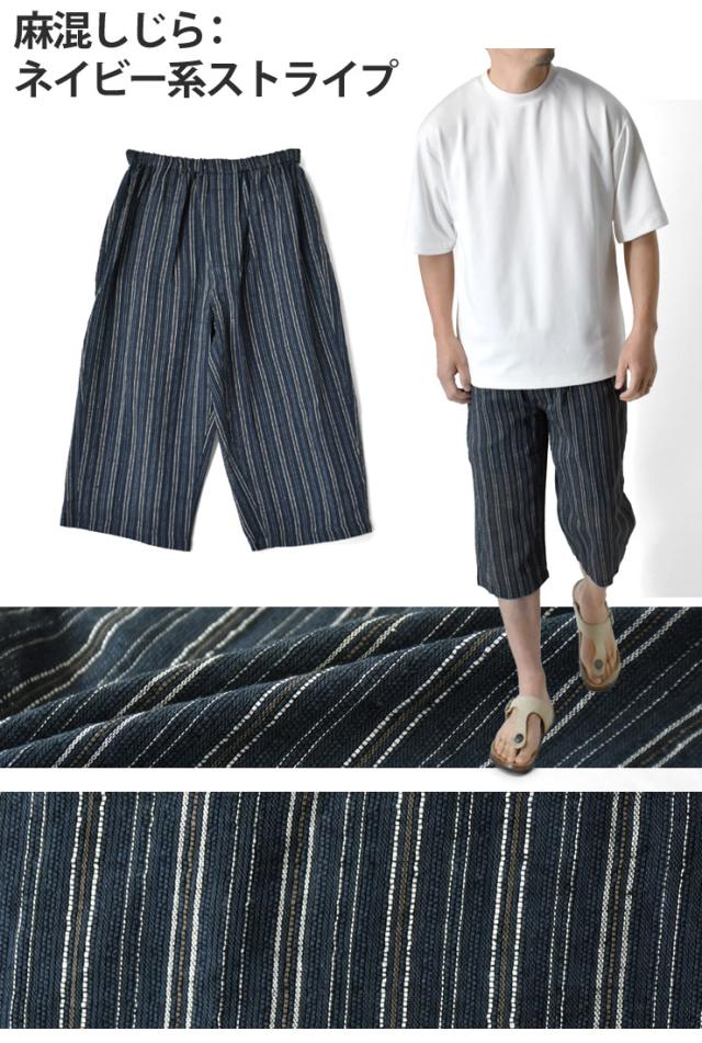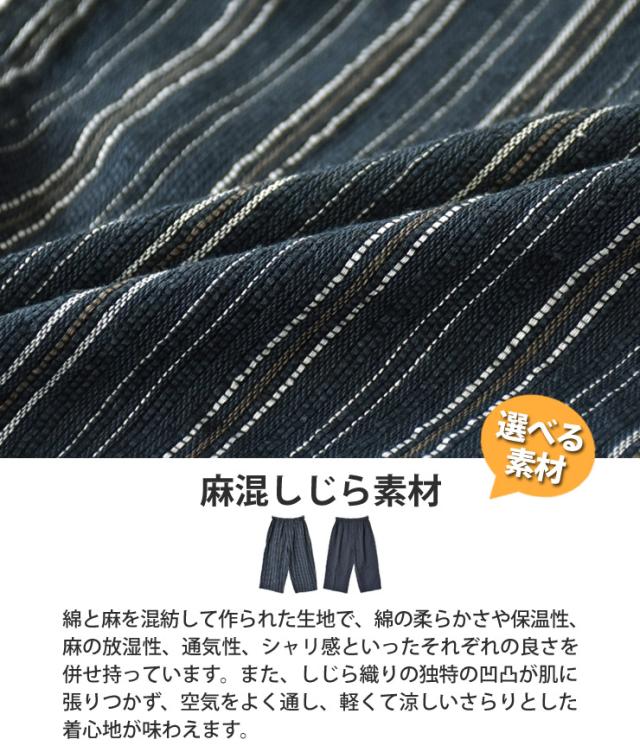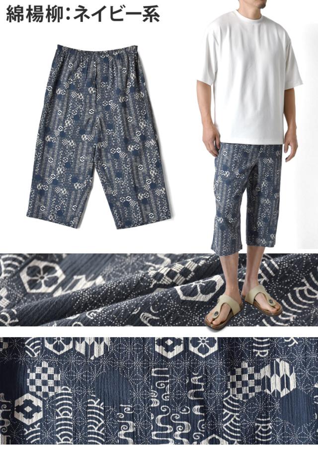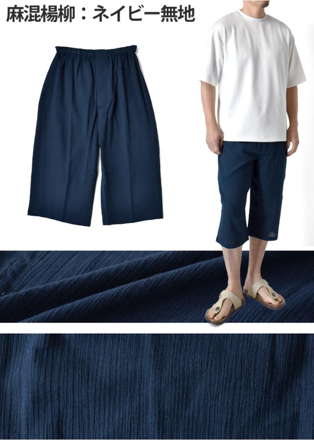 ステテコ メンズ 7分丈 綿 麻混 楊柳 しじら織り 涼しい 和柄 部屋着 吸水 シャリ感 前開き 【H1Q】【送料無料】【メール便2】【mens】 冬新作