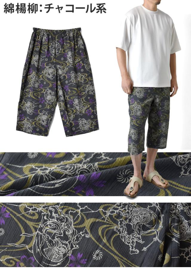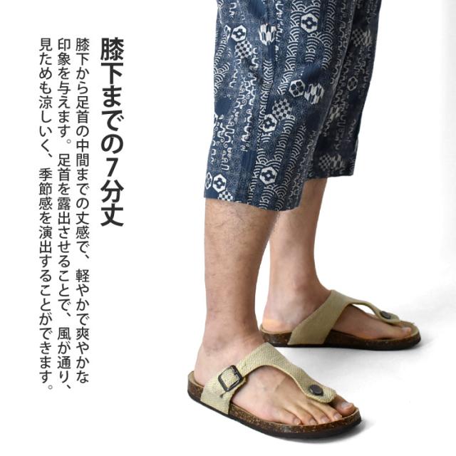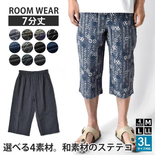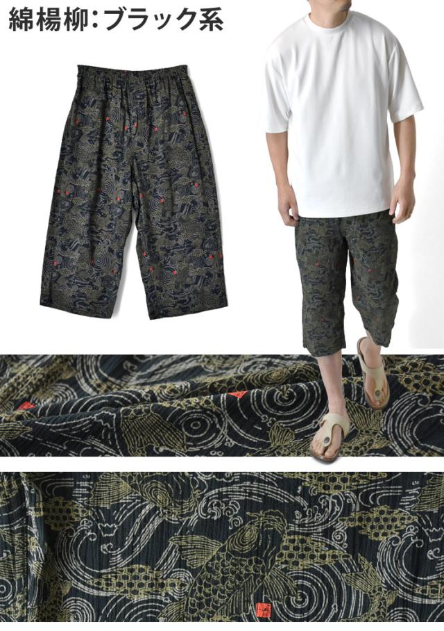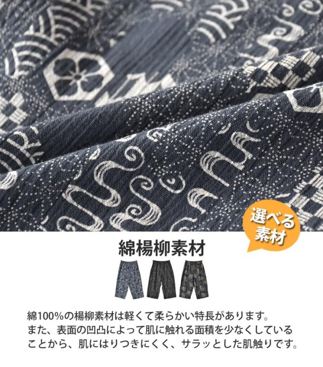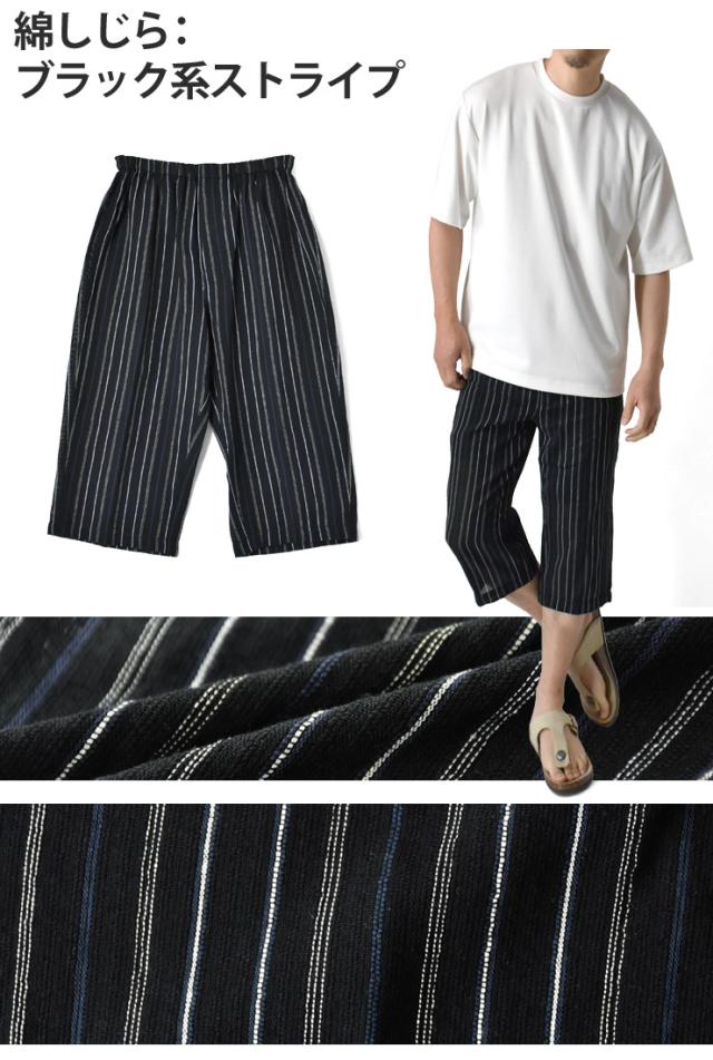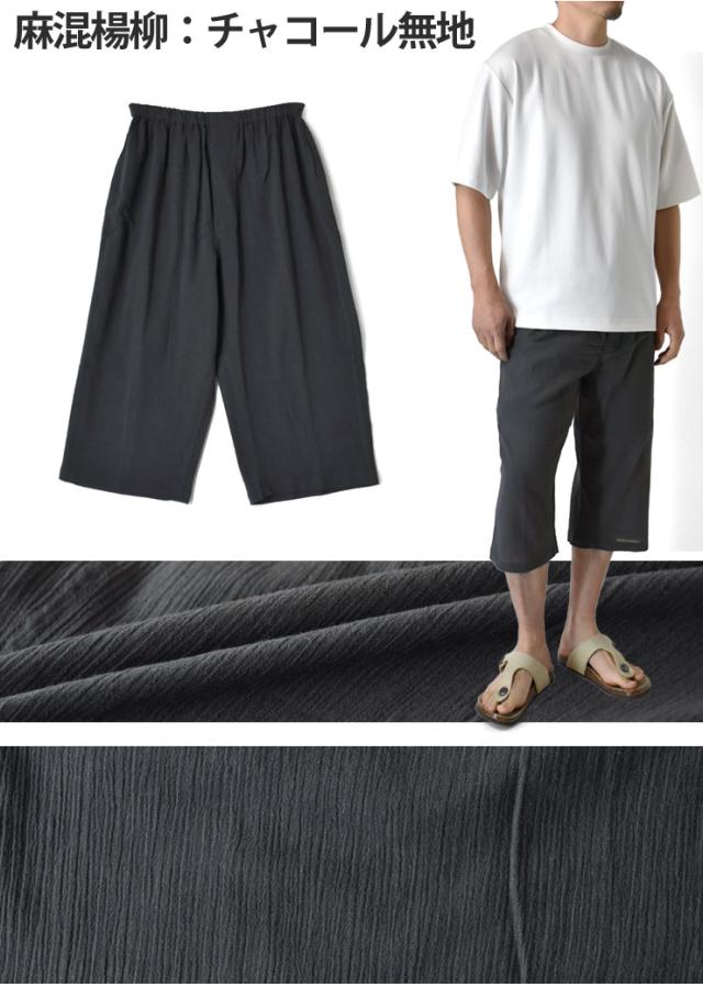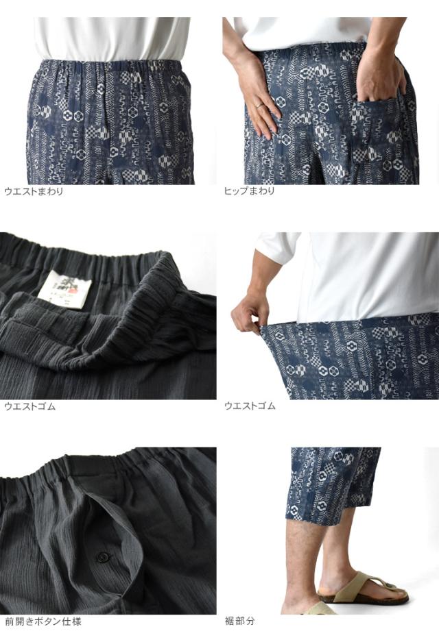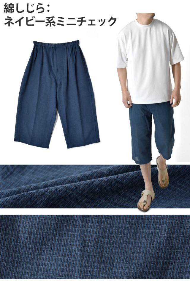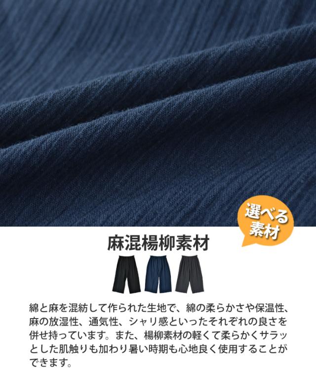 ステテコ メンズ 7分丈 綿 麻混 楊柳 しじら織り 涼しい 和柄 部屋着 吸水 シャリ感 前開き 【H1Q】【送料無料】【メール便2】【mens】 冬新作