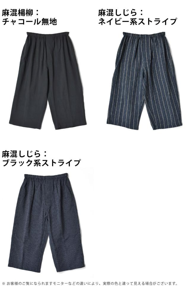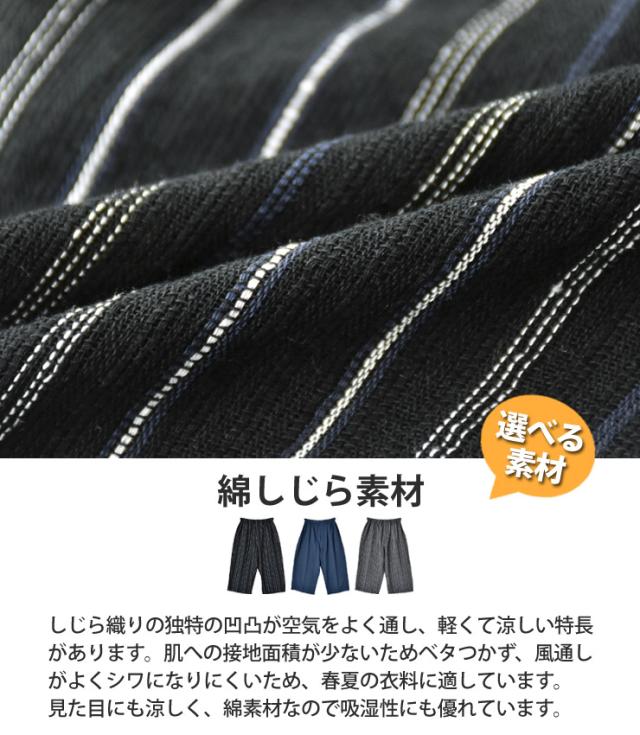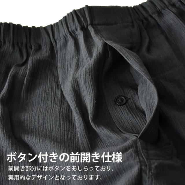 綿 麻混 楊柳 しじら織り 前開き 7分丈 ステテコ【H1Q】