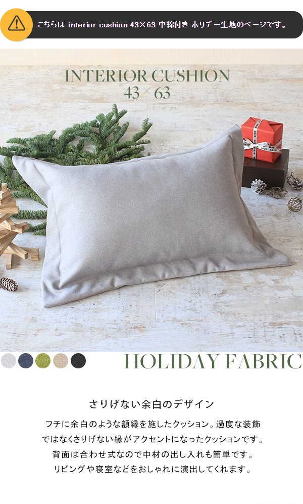 interior cushion 43×63 中綿付き ホリデー生地