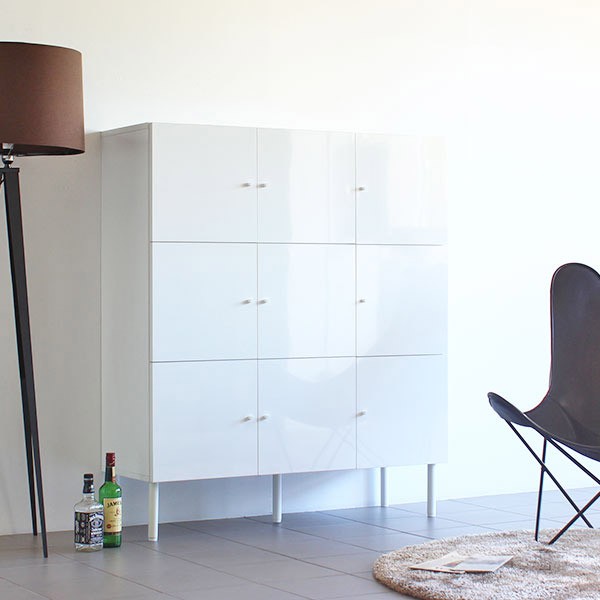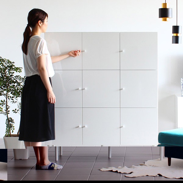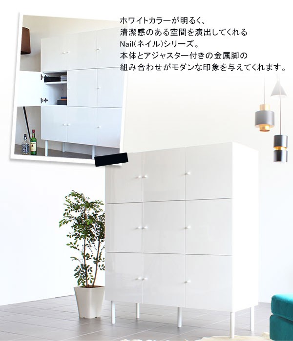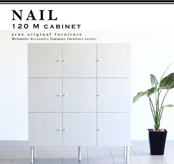 キャビネット 鏡面 収納 ホワイト 扉つき 完成品 白 鏡面仕上げ 家具 nail 120M cabi ☆