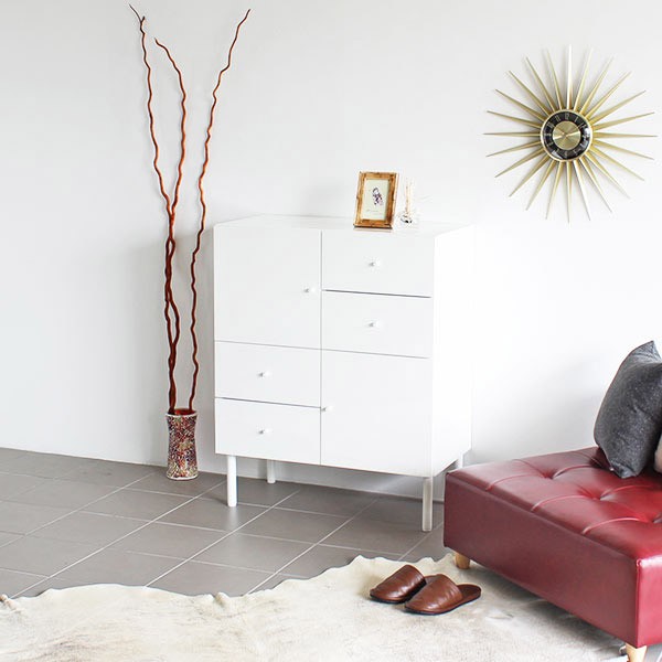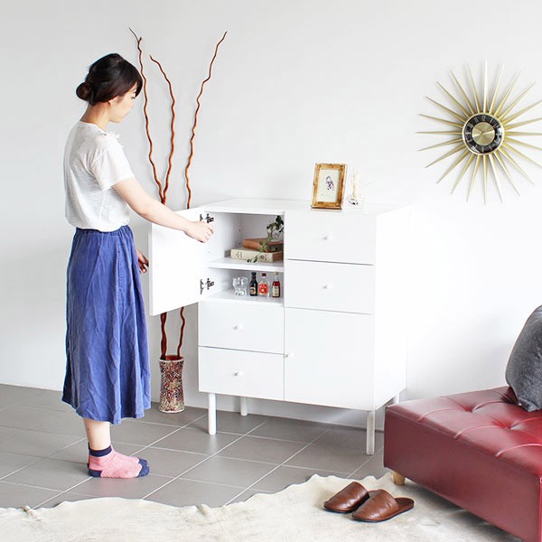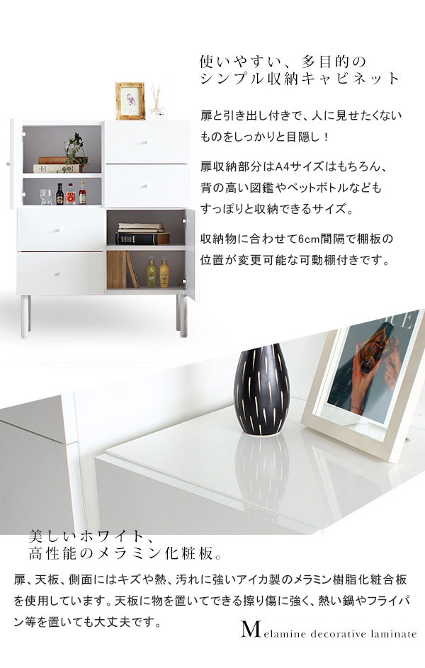 キャビネット ホワイト 高級 おしゃれ 白 80 リビングボード 日本製 鏡面 鏡面仕上げ 家具 完成品 引き出し nail 80L chest cabi ☆