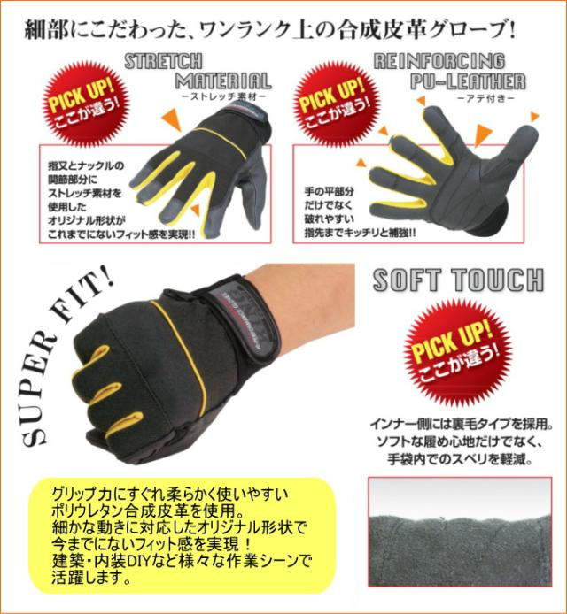 PU-KING 黒×黄 LLサイズ K-17 ネコポス対応 手袋 作業用 作業 作業用手袋 運送 荷造り 出荷作業 内装業 配管工事 日用大工