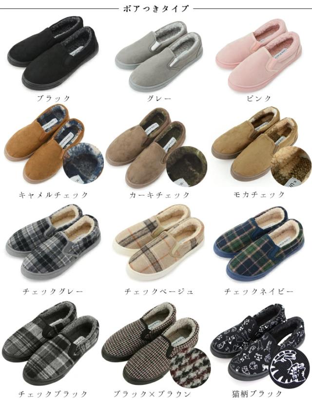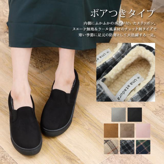 スリッポン レディース 靴 ボア スニーカー シューズ 無地 柄 ボアスリッポン (ym-ASPN) [宅配B]【送料無料】 暖かい カジュアルスリッポン 内ボア もこもこ チェック 通勤 通学 痛くない 履きやすい シンプル 可愛い おしゃれ 女性 agesugi_sfa