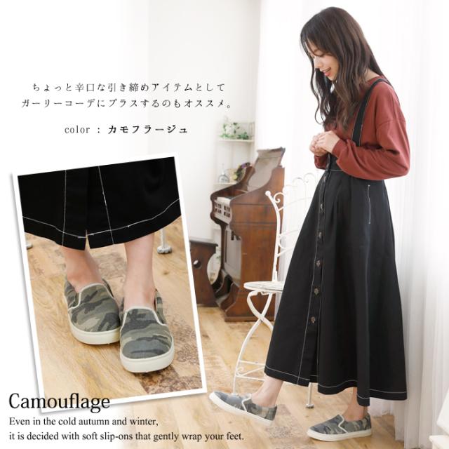 ボアなしとボアつき、選べる二種類のカジュアルスリッポン! 秋冬におすすめなコーデュロイやスエード生地に、 シンプルな無地、かわいいチェック柄を合わせました。 インソールが厚めでふかふか、履き口にもクッションがありソフトな足あたり。 さっと履ける楽ちんスリッポンです♪ ────────────────────────────────── ■サイズ Sサイズ=23.0〜23.5cm Mサイズ=23.5〜24.0cm Lサイズ=24.0〜24.5cm ※対応サイズにつきましては、メーカー表記サイズとなります。 ■実寸サイズ(外寸) S:長さ:約25.2cm、幅:約9cm、甲外周り:約25.0cm、ソール:約2cm M:長さ:約25.7cm、幅:約9cm、甲外周り:約25.5cm、ソール:約2cm L:長さ:約26.5cm、幅:約9cm、甲外周り:約26.0cm、ソール:約2cm (※当店で計測したサイズの為、あくまで目安となります。) ■素材・成分:[甲材]ポリエステル、[底材]合成底 カモフラージュのみ:[甲材]コットン、[底材]合成底 ■重量:約250g(Mサイズ、片足で計測) ■生産地:中国 <注意事項> ※お客様のご覧になられますパソコン機器及びモニタなどの違い、また室内、室外での撮影により実際の商品素材の色と相違する場合もありますのでご了承下さい。なお著しい色の相違は御座いません。 カラーバリエーションの画像が実物に最も近いお色味です。そちらをご参考ください。 [2011] |