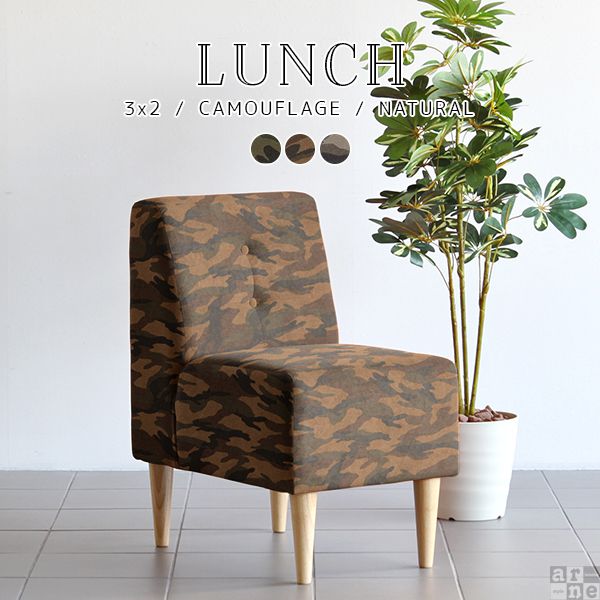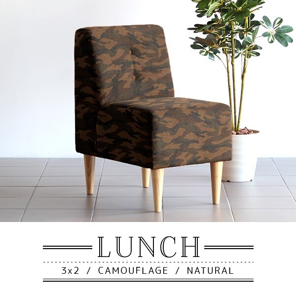 ソファ 迷彩 ソファー 1人掛け 一人掛け 1人用ソファ アームレス 肘なし ダイニングソファ 北欧 おしゃれ Lunch 3×2アームレス/脚NA □