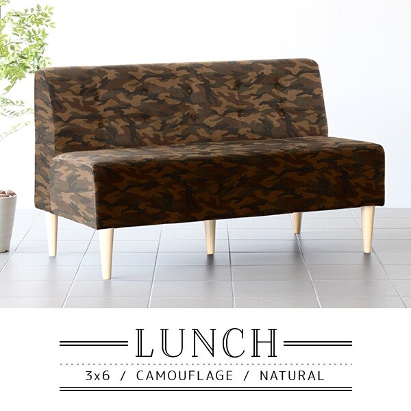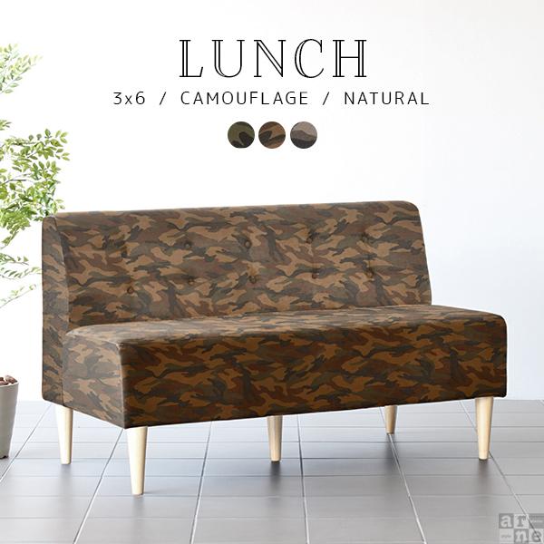 ソファ 迷彩 ソファー 2人掛け 二人掛け 2人 アームレス 肘なし カフェ ダイニングソファ 北欧 おしゃれ Lunch 3×6アームレス/脚NA □