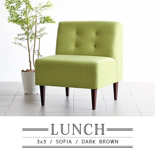 ソファ 茶色 アームレスソファ ブラック 1人掛け コンパクト カフェ ソファー 北欧 シンプル おしゃれ 肘なし Lunch 3×3アームレス/脚DB □