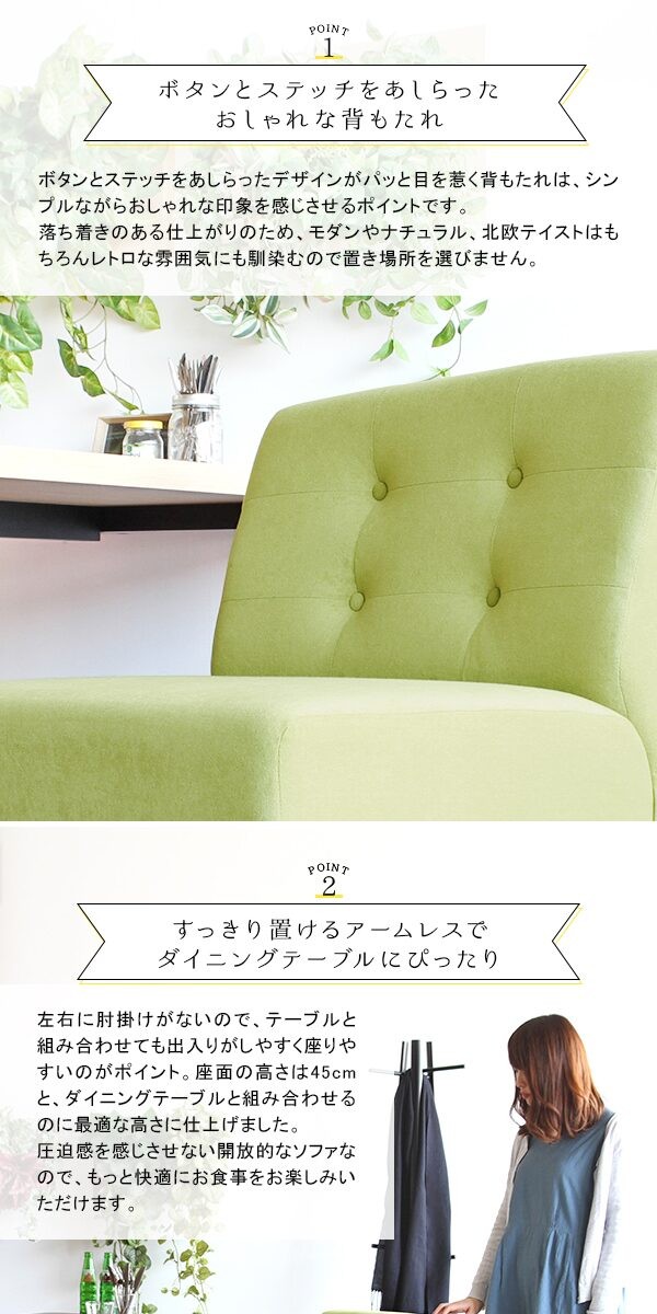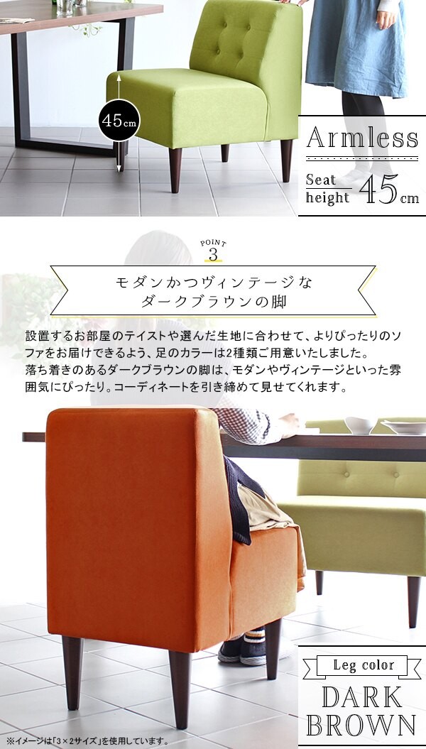 ソファ ソファー 北欧 シングル アームレス 1人用 1人掛け ダイニングソファ おしゃれ 肘なし カフェ Lunch 3×3アームレス/脚DB □