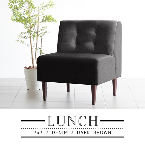 ソファ デニム シングル ソファー 北欧 1人掛け 一人掛け 西海岸 おしゃれ アームレス 肘なし ダイニング Lunch 3×3アームレス/脚DB □