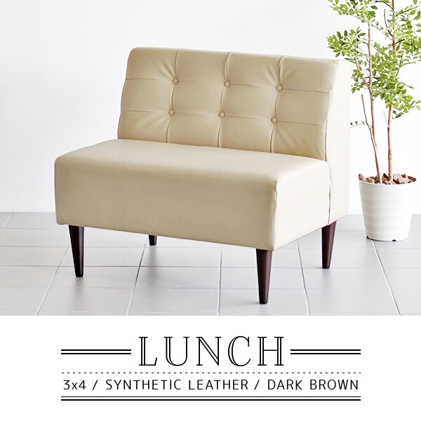 レトロ ソファ アームレス 合皮 白 ソファー 北欧 1人掛け シンプル おしゃれ 肘なし ダイニングソファ Lunch 3×4アームレス/脚DB □