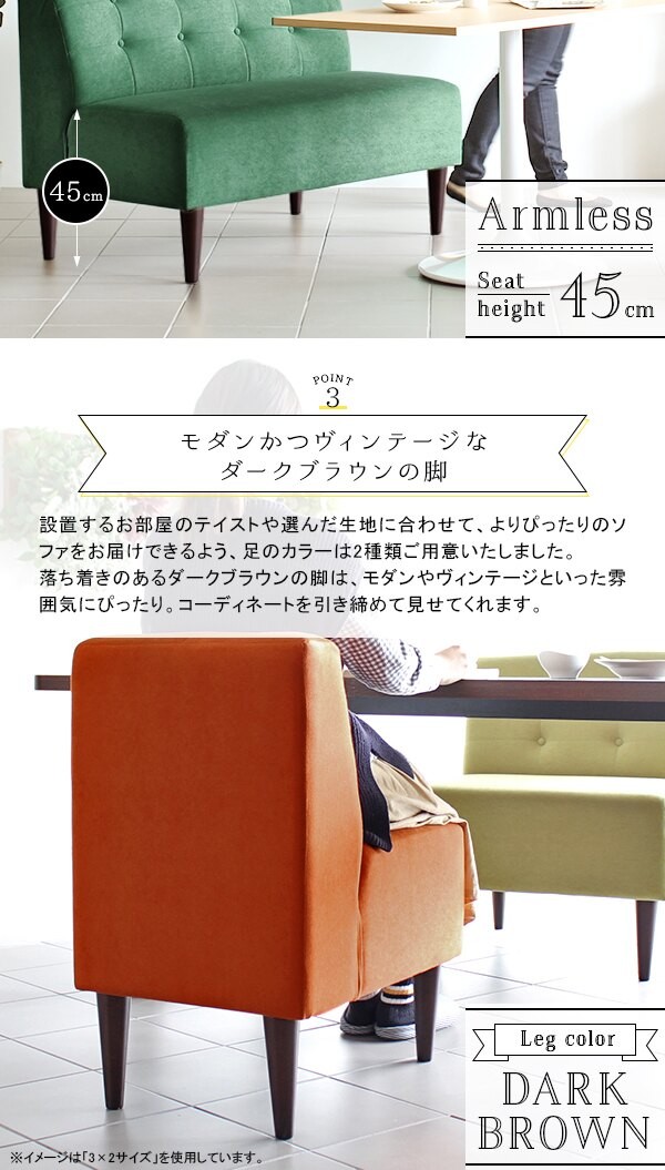 ソファ アームレスソファ ダイニングソファ 2人掛け 二人掛け おしゃれ 北欧 コンパクト シンプル カフェ Lunch 3×5アームレス/脚DB □