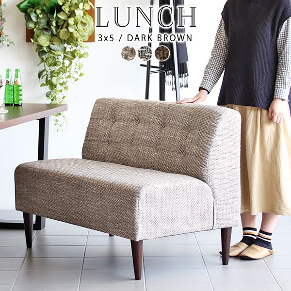 ソファ アームレス コンパクト グレー ソファー 北欧 2人掛け 茶色 アームレスソファ ダイニングソファ Lunch 3×5アームレス/脚DB □