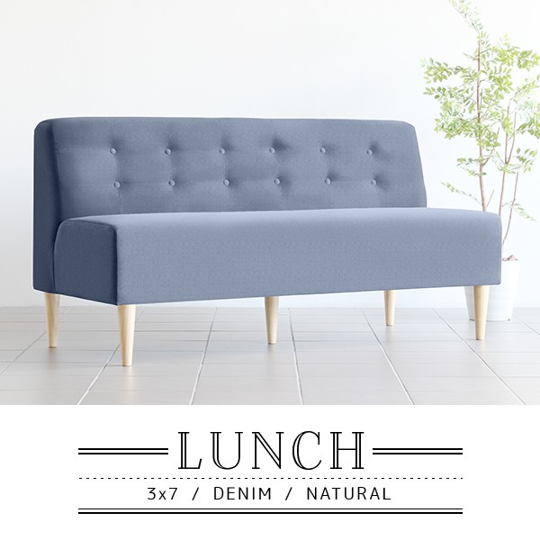 ソファ デニム 西海岸 アームレス 3人掛け 160cm ダイニングソファ 北欧 おしゃれ 肘なし ソファー カフェ Lunch 3×7アームレス/脚NA □