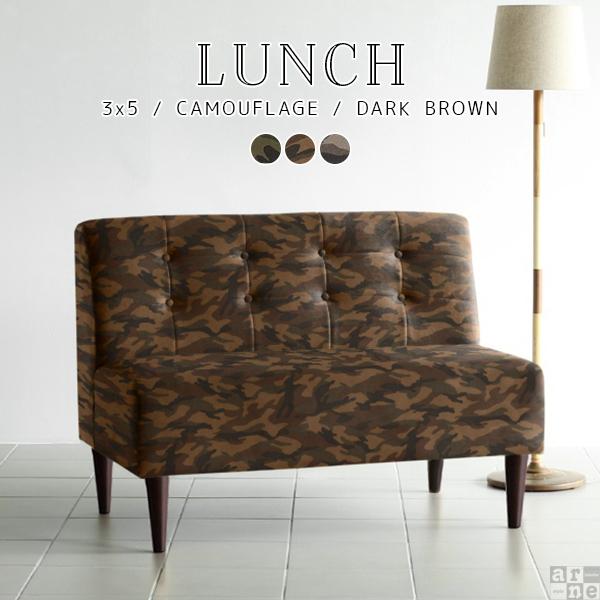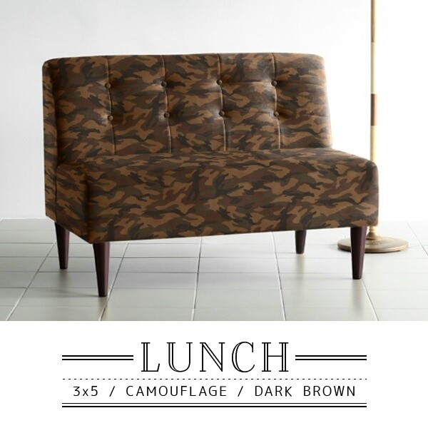 ソファ 迷彩 ソファー 2人掛け 二人掛け 2人 アームレス 肘なし カフェ ダイニングソファ 北欧 おしゃれ Lunch 3×5アームレス/脚DB □