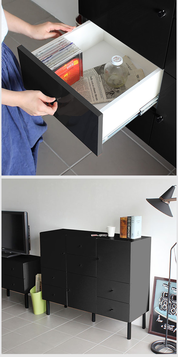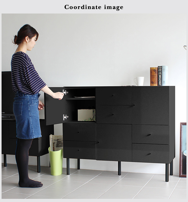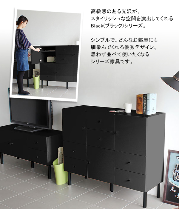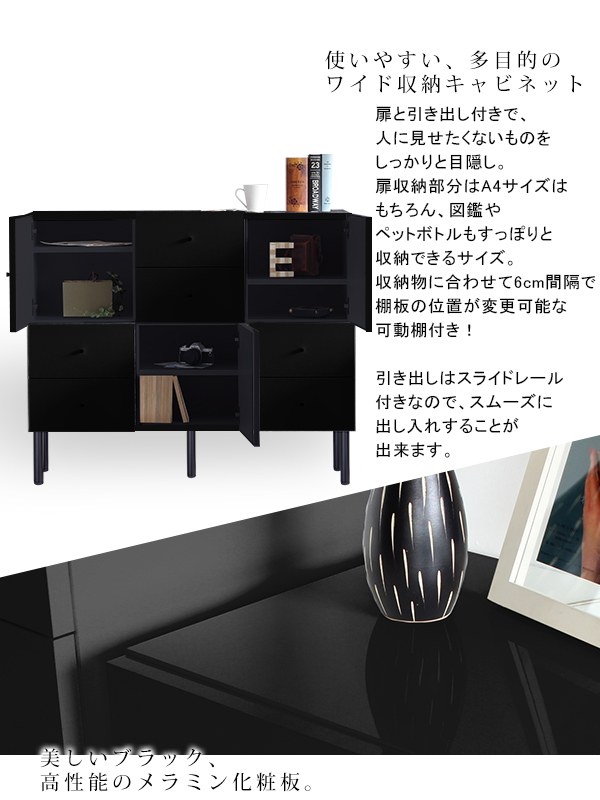 キャビネット 収納 扉付き 脚付き チェスト 鏡面 引き出し リビングボード サイドボード 完成品 黒 脚付 a4 black 120L chest cabi ☆