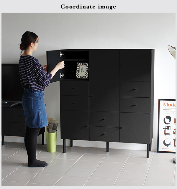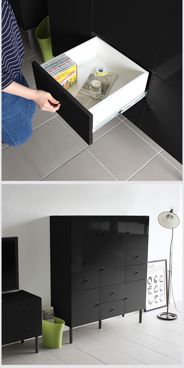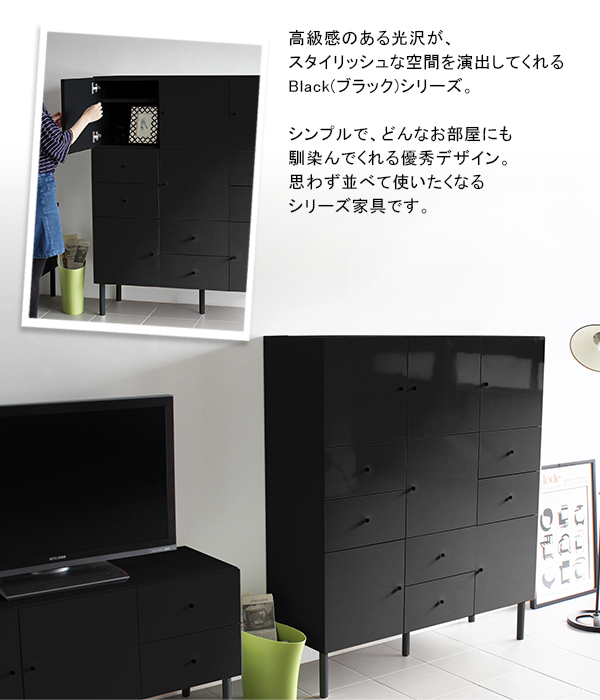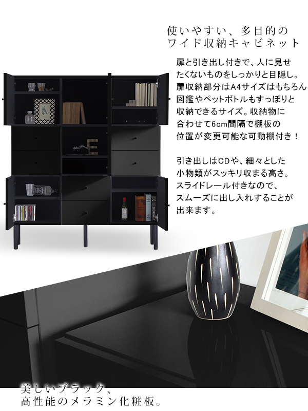 キャビネット 収納 扉付き 脚付き チェスト 鏡面 引き出し リビングボード 完成品 黒 ブラック 収納家具 a4 black 120M chest cabi ☆